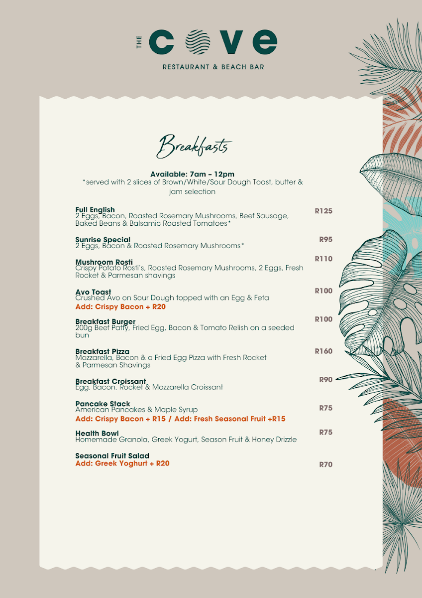While the flavors of many dishes have won hearts, customer feedback suggests a potential adjustment in seasoning practices to elevate the dining experience further. A touch less spice might allow the ingredients to shine brighter, particularly in options like the breakfast avocado bread and toasties. Overall, The Cove captures the essence of coastal dining, blending exceptional service with a beautiful ambiance. Indulge in a meal that tantalizes the taste buds while overlooking the serene waves.